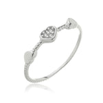 Anel feminino prateado com aro detalhado e três corações, um deles cravejado no centro. Anel super delicado!