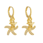 Argola feminina dourada com fecho articulado. Composta por dois pingentes de duas estrelas, a maior cravejada em zircônia e a menor detalhada. Super cool pro seu dia a dia.