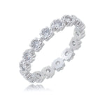 Anel feminino prateado com aro todo de florizinha com zirconia cravejada.