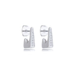 Argola prateada feminina formato retangular, cravejada com zircônias. Fundo vazado para torná-la mais leve.
