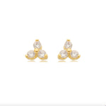 Brinco feminino florzinha com três zircônias cravejadas em formato de flor.