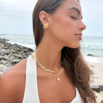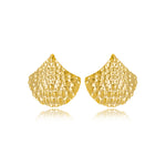 Brinco feminino dourado. Formato de concha todo trabalhado em ondulações orgânicas.